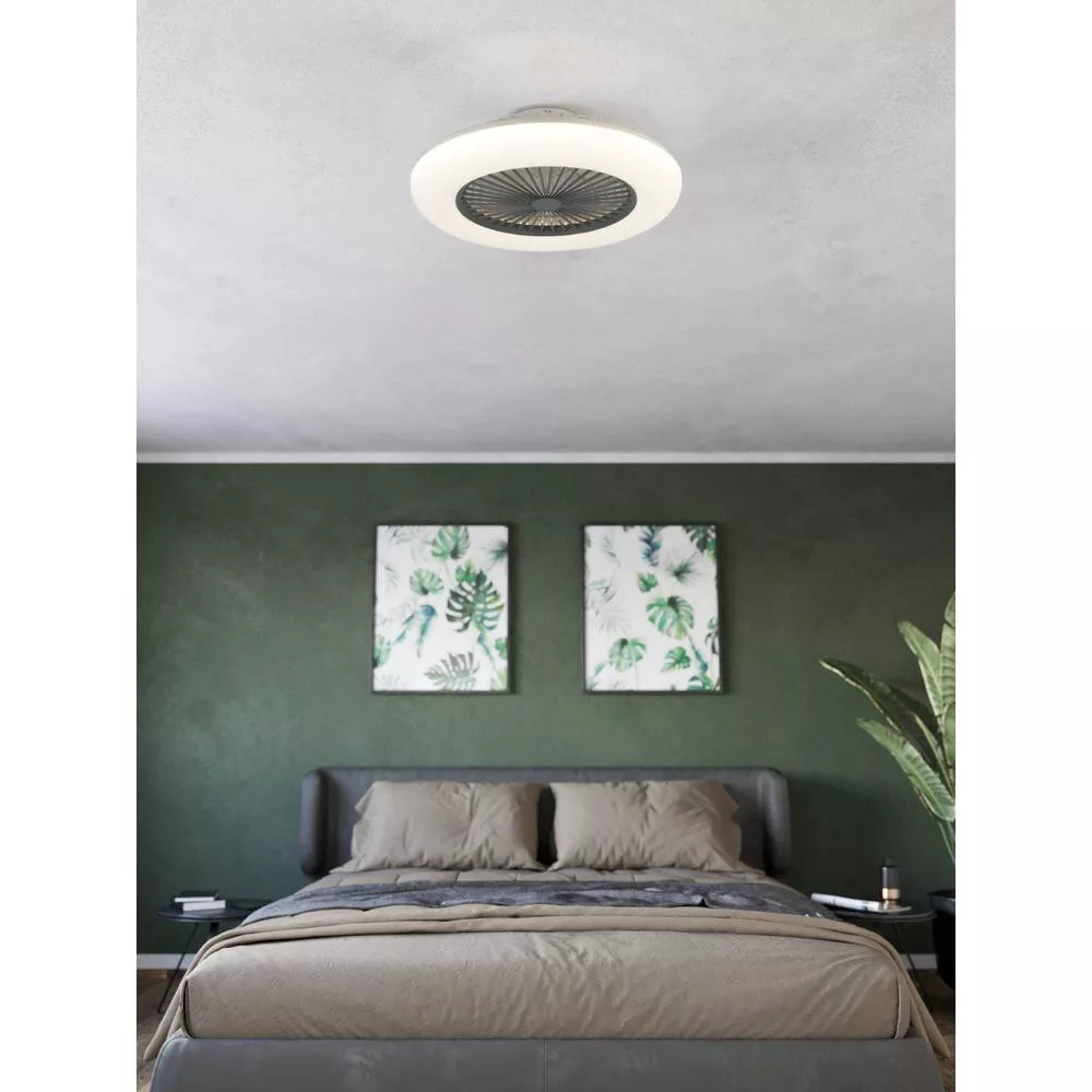 Kényelmesen, távirányítóval működtethető, a fény és a ventilátor funkció külön kapcsolható. A fényerő fokozatmentesen 10%-tól 100%-ig állítható, a színhőmérséklet pedig 2700 K-től 6500 K-ig. 4500 lumen fényáramával megfelelő fényt biztosít egy közepes méretű helyiségben.