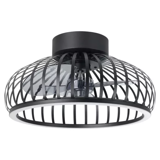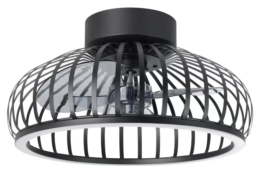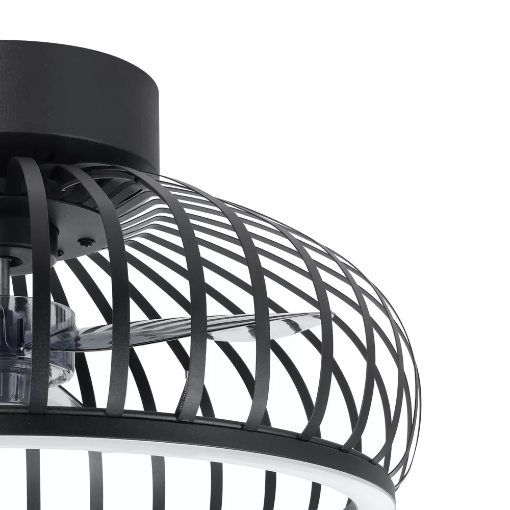 EGLO Mogano LED mennyezeti ventilátor világítással, fényerőszabályozható, távirányítóval, kompakt fekete kialakítással, 6 sebességfokozattal, DC motorral (20W), nyári–téli üzemmóddal, meleg fehértől hideg fehérig állítható fénnyel, Ø 42,8 cm