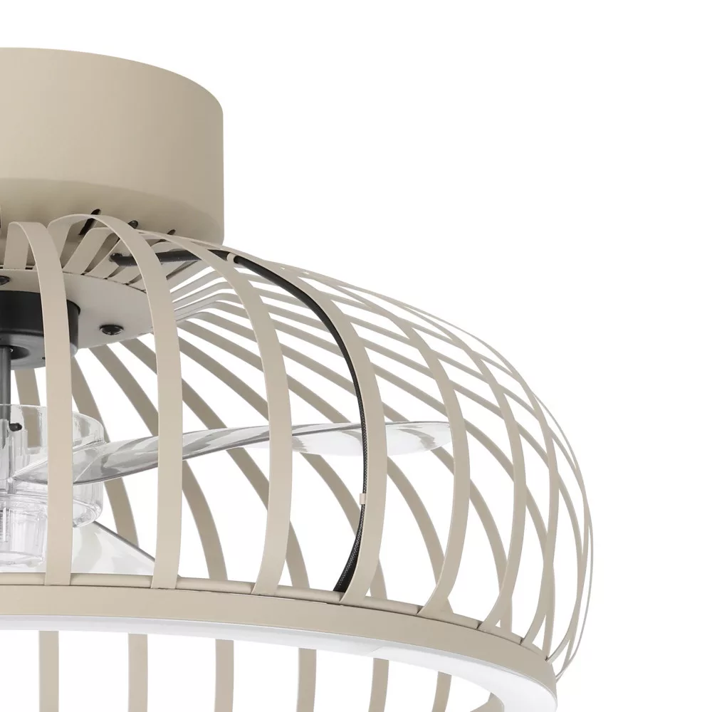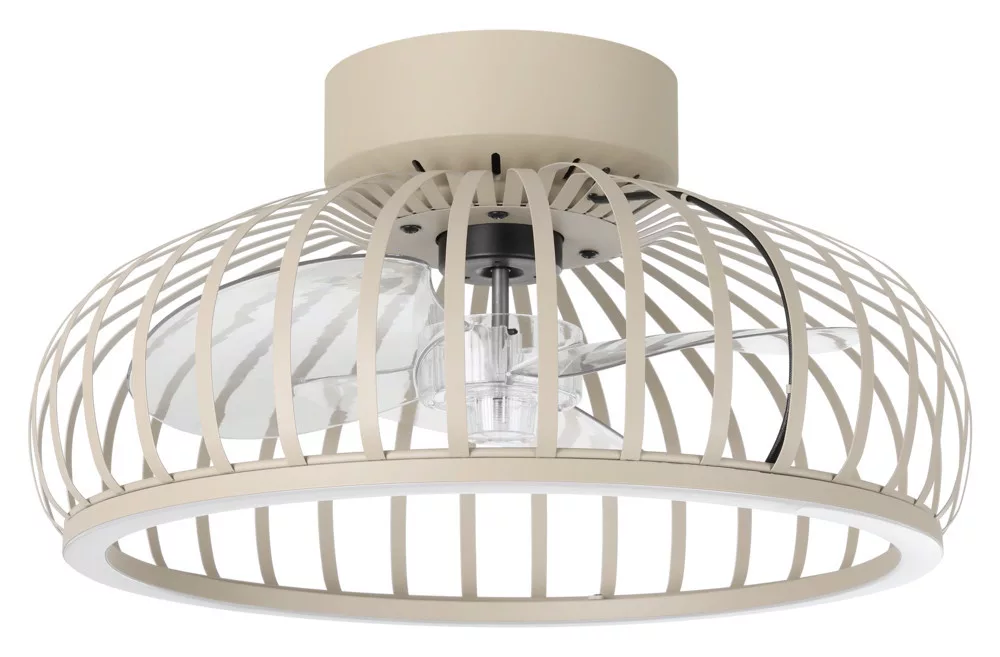 EGLO Mogano LED mennyezeti ventilátor világítással, fényerőszabályozható, távirányítóval, kis méretű kivitelben, 6 sebességfokozattal, bézs színben, DC motorral (20W), nyári–téli üzemmóddal, meleg fehértől hideg fehérig állítható fénnyel, Ø 42,8 cm