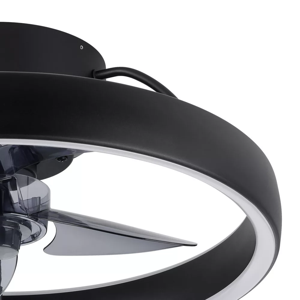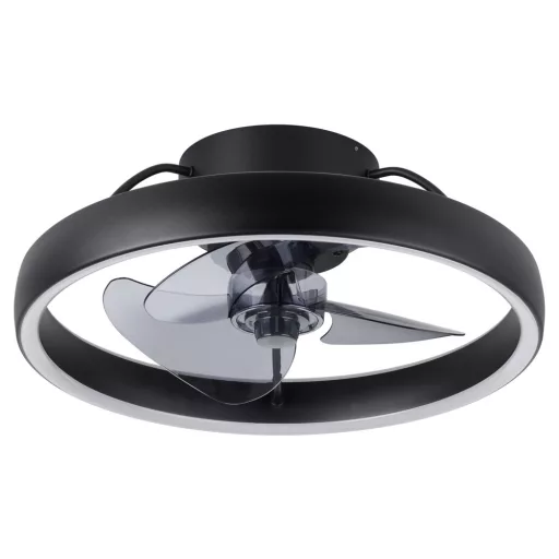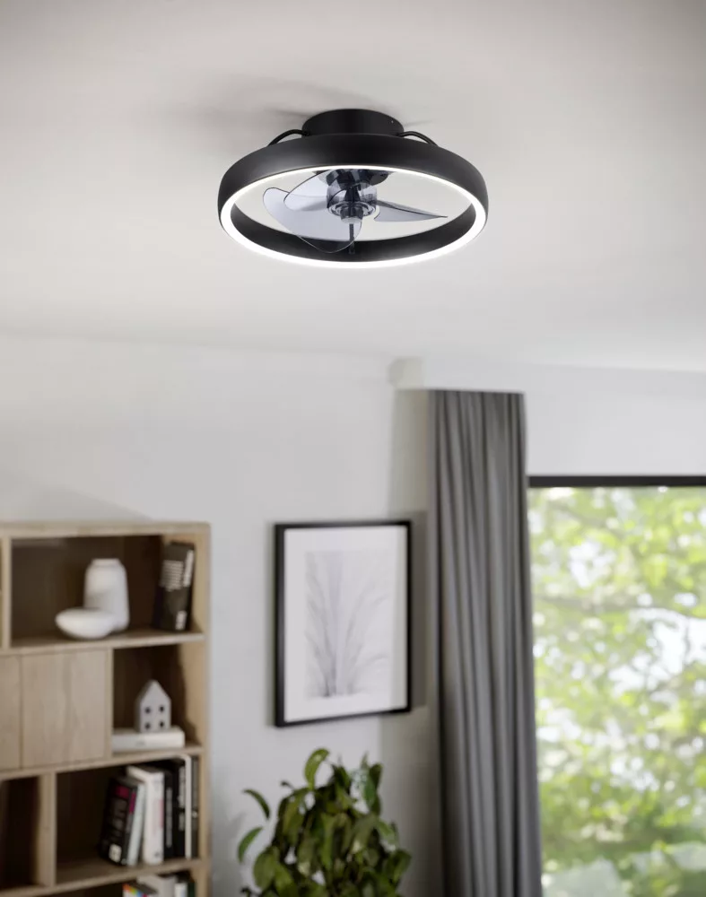EGLO Manarola LED mennyezeti ventilátor világítással, fényerőszabályozható távirányítóval, kompakt kivitelben, 6 sebességfokozattal, nyári–téli üzemmóddal, fekete színben, DC motorral (20W), meleg fehértől hideg fehérig állítható fénnyel, Ø 42,2 cm