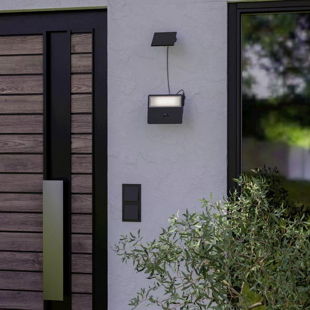 A kimagaslóan magas fényerejű, fekete színű PANETTIERI napelemes/szolár fali lámpa nagyszerű világítási megoldást kínál kültéren. A mozgásérzékelővel felszerelt lámpa automatikusan teljes fényerőre kapcsol, amint mozgást észlel, 45 másodperc után pedig kikapcsol. Használhatja mozgásérzékelő funkció nélkül is, ez esetben a külső fényviszonyok csökkenésekor gyengébb (34%-os) fényerővel felkapcsol a lámpa, és folyamatosan világít.