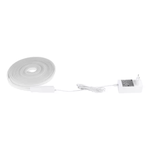 A csomag tartalmazza a tápegységet, valamint a felrögzítéshez szükséges 10 db klipszet és csavart. A LED szalag nem vágható.
