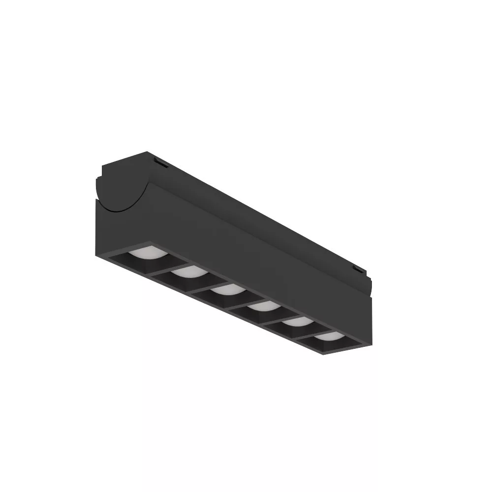 A TRACK PLUS extra lapos sín a mindössze 6 mm-es magasságával, továbbá a takaróprofilok segítségével kialakított egységes, zárt felületével elegáns megjelenést biztosít. A sínek tetszőleges hosszban vághatóak kézi fémfűrésszel vagy gérvágó körfűrésszel. A síneket a felületre 4 helyen kell rögzíteni, az előre kialakított furatokon keresztül. A sínekre a világítótestek felhelyezése mágnes segítségével történik, majd bepattintva kell rögzíteni azokat.