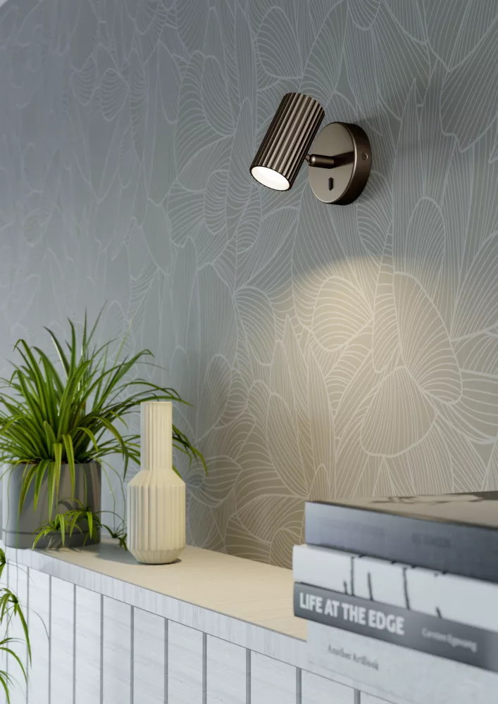 A PORTILLO fali lámpa modern és karakteres megjelenésével stílusos kiegészítője modern és klasszikus enteriőröknek. A henger formájú lámpafejet különleges, függőleges bordázott felület teszi igazán egyedivé, amely nemcsak látványában, hanem tapintásában is prémium érzetet nyújt. A bronz színű felület elegáns, meleg karaktert kölcsönöz a lámpának. Az elforgatható lámpafej lehetővé teszi a fény pontos irányítását, így ideális választás olvasósarokba, ágy mellé, folyosóra vagy hangulatvilágításként a nappaliban. A lámpatest GU10 foglalattal rendelkezik, így Ön szabadon választhatja ki a kívánt fényerőt és színhőmérsékletet biztosító fényforrást. (A fényforrás nem tartozék, az külön vásárolandó.) A falikonzolon diszkréten elhelyezett billenőkapcsolóval kényelmesen be- és kikapcsolható.