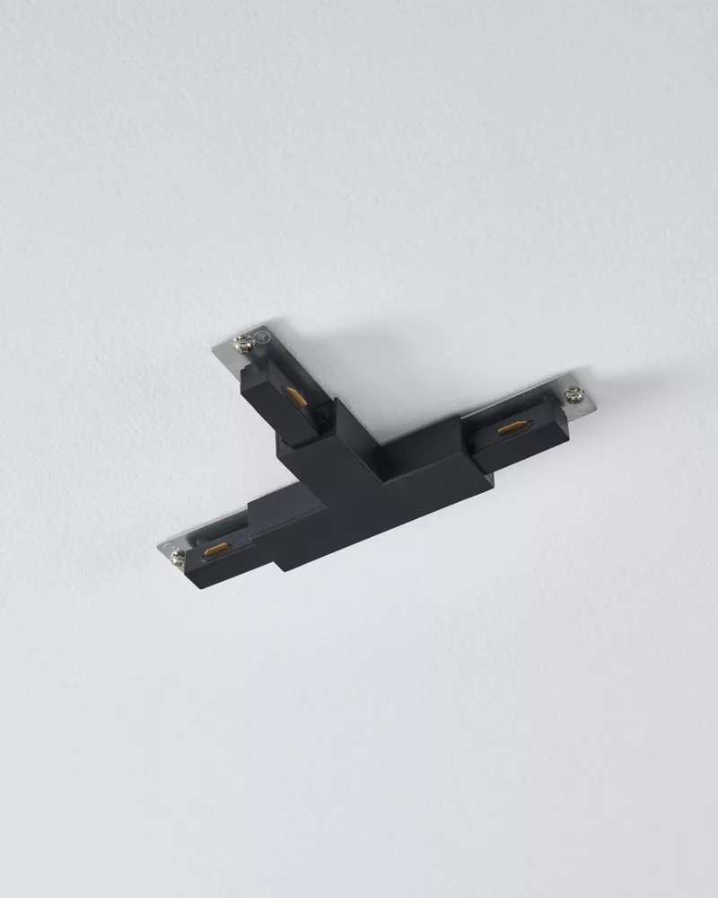 A fekete T alakú toldóidom a 220 V-os EASY TRACK sínes lámparendszer eleme, mely nemcsak klasszikus összekötő elemként használható, hanem áram-betáplálásként is. Megvásárolhatja meglévő szettjéhez, ha bővíteni szeretné; vagy ha egyedileg kiválogatott elemekből szeretné összeállítani sínes lámparendszerét.