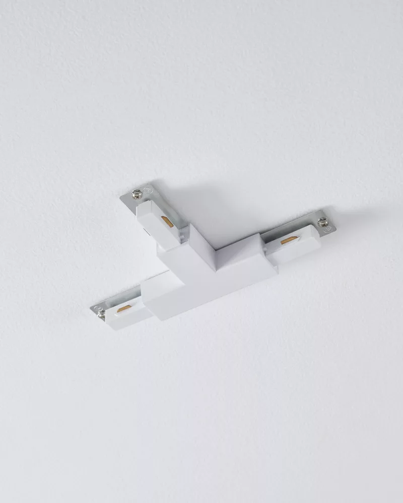 A fehér T alakú toldóidom a 220 V-os EASY TRACK sínes lámparendszer eleme, mely nemcsak klasszikus összekötő elemként használható, hanem áram-betáplálásként is. Megvásárolhatja meglévő szettjéhez, ha bővíteni szeretné; vagy ha egyedileg kiválogatott elemekből szeretné összeállítani sínes lámparendszerét.