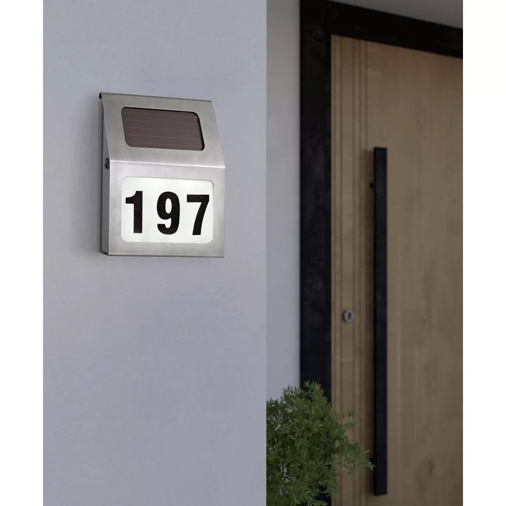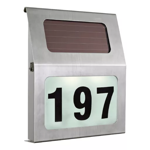Az ORIMINI szolár lámpa kecsesen simul a ház falára. Előnye, hogy nem kell vezetéket kiépíteni, és egyúttal a házszámtáblára sincs gondja: 0-tól 9-ig minden számból hármat tartalmaz a csomag, illetve a-tól f-ig egy-egy betűt is.